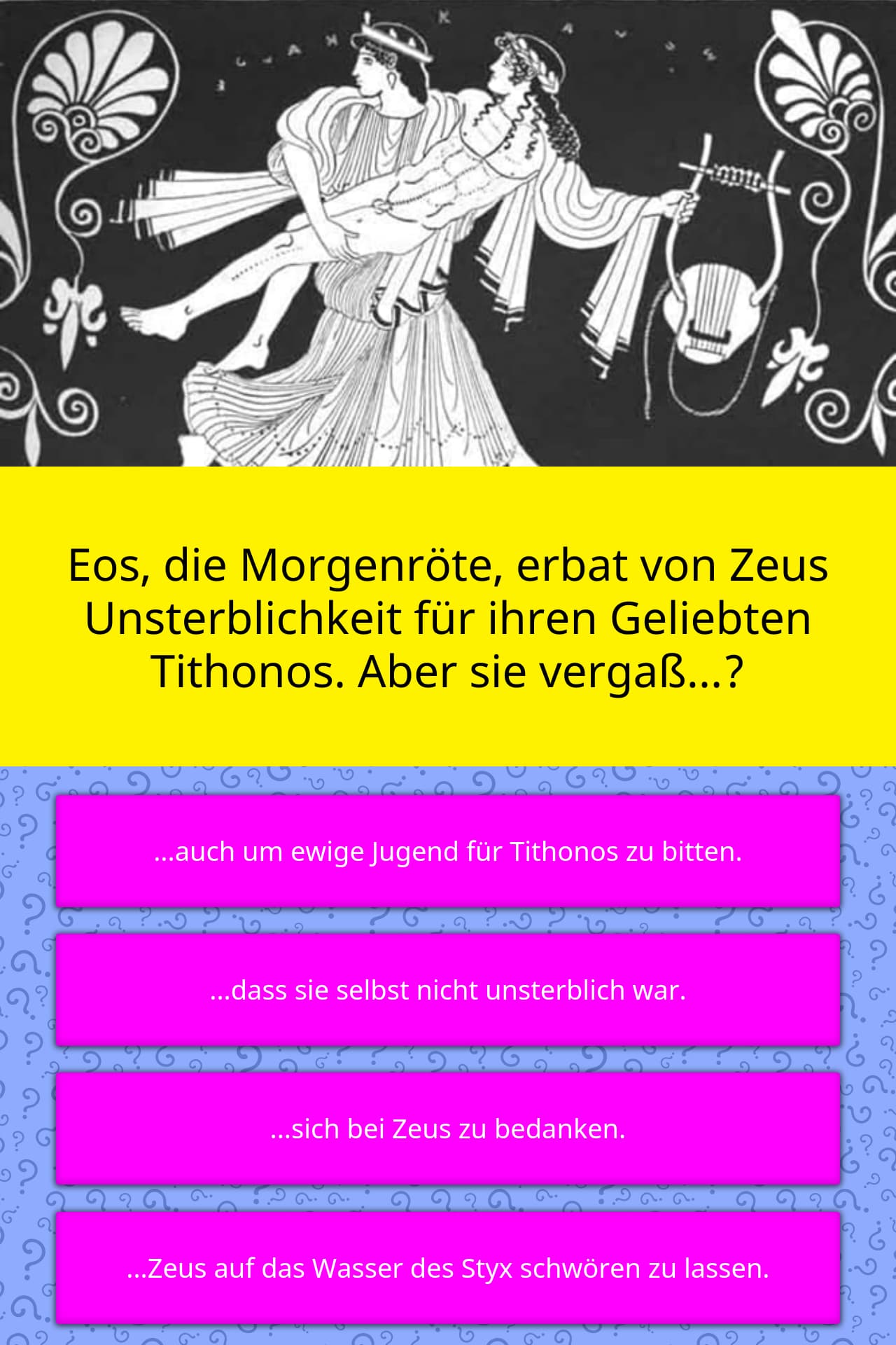 Geliebte des zeus. Eine Geliebte des Zeus 2 Buchstaben - App Lösungen Eine Geliebte des Zeus 2 Buchstaben. Written by Kapo 18. December 2017 Leave a Comment on Eine Geliebte des Zeus 2 Buchstaben. Suchen sie nach: Eine Geliebte des Zeus 2 Buchstaben Kreuzworträtsel Antworten und Lösungen. Diese Frage erschien heute bei dem täglichen Worträtsel von Morgenweb.de GRIECHISCHE GÖTTIN, ZEUS-GEMAHLIN - Lösung mit 4 ... Auf dieser Seite findest Du alle Kreuzworträtsel-Lösungen für. Griechische Göttin (Weisheit) Griechische Göttin der Ehe und Familie, Gattin des Zeus. Altägyptische Göttin, Gemahlin des Osiris. Griechische Sage: Geliebte des Zeus, Mutter des Hermes. Griechische Göttin, Mutter des Zeus. Gemahlin des Zeus. GELIEBTE DES ZEUS mit 2 - 11 Buchstaben - Kreuzworträtsel ... Geliebte des Zeus Kreuzworträtsel-Lösungen Alle Lösungen mit 2 - 11 Buchstaben ️ zum Begriff Geliebte des Zeus in der Rätsel Hilfe Zeus — Brill C. Aspekte des Wirkens; D. Ehefrauen, Geliebte und Opfer sexueller Gewalt; E. Strafen des Zeus; Bibliography (Ζεύς; lat. Iup(p)iter) Z., der Hauptgott der Olympischen Götterwelt, Himmelsgott, Sohn des Kronos und der Rhea, tritt im ant. Mythos und seiner Rezeption häufig episodisch in den Geschichten anderer Figuren auf.