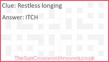 Longing crossword clue - Answers.org Written by bible December 16, 2021. Find below Longing crossword clue answer. Using our answers, that won't be a problem. Our site is updated daily and that means we provide you everyday with answers you'll be looking for regarding Challenger. This difficult crossword clue has appeared on Puzzle Page Daily Crossword December 17 2021 Answers.
