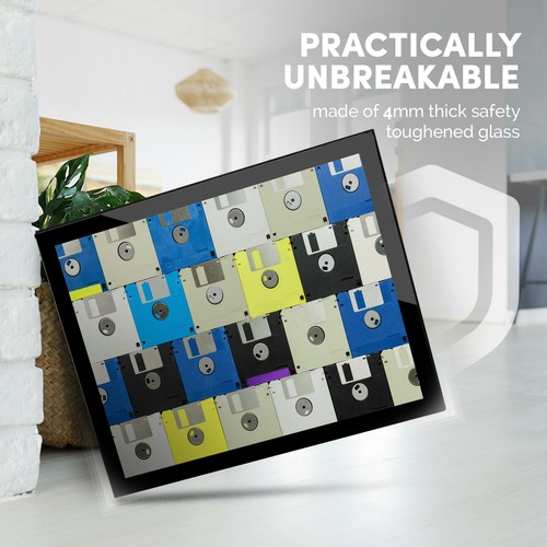 A3 Glass Frame - Floppy Disk Pattern Retro Computer Art Gift ...