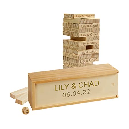 WE Games Custom Engraved Wood Block Party Game in Wooden Case, Guest Book Alternative for Wedding, Graduation, Baby Shower, Retirement Party - 12 inch